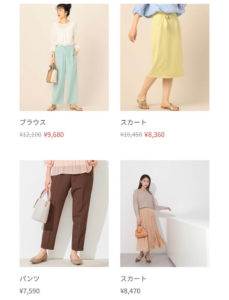 百貨店やファッションビルでよく見かけるブランドが多い印象です。テイストもきれいめ・カジュアル・ナチュラル・コンサバ・フォーマルなど多様です。
