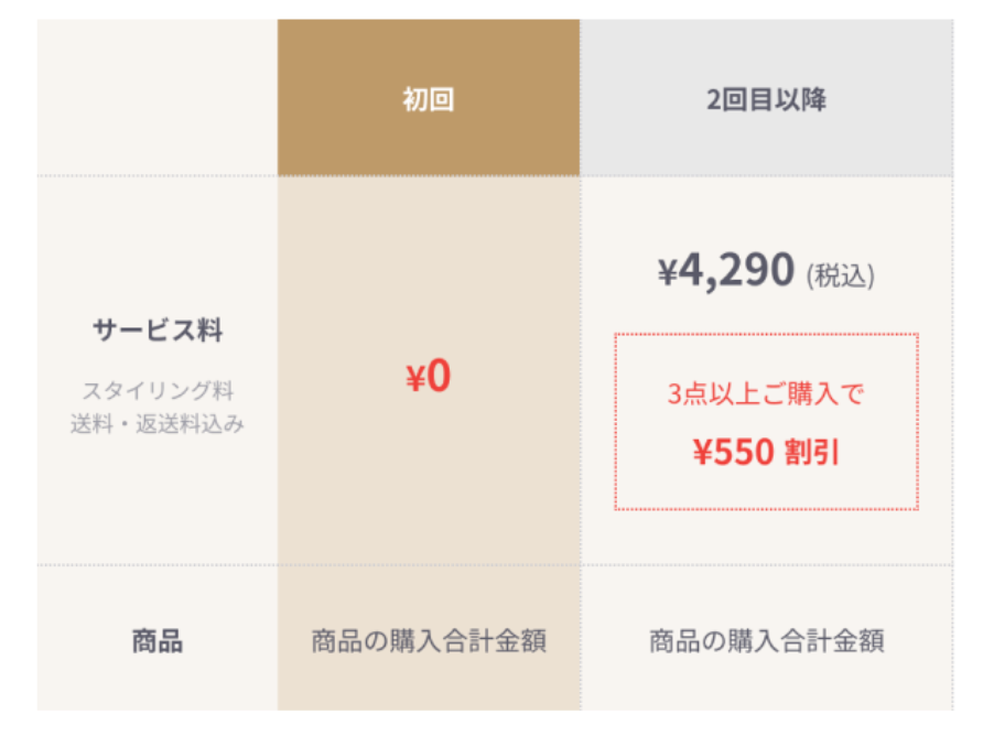 ・商品代+αでオンラインでコーディネートの相談ができたり、送料返送料が無料だったりと様々なサービスが受けられる