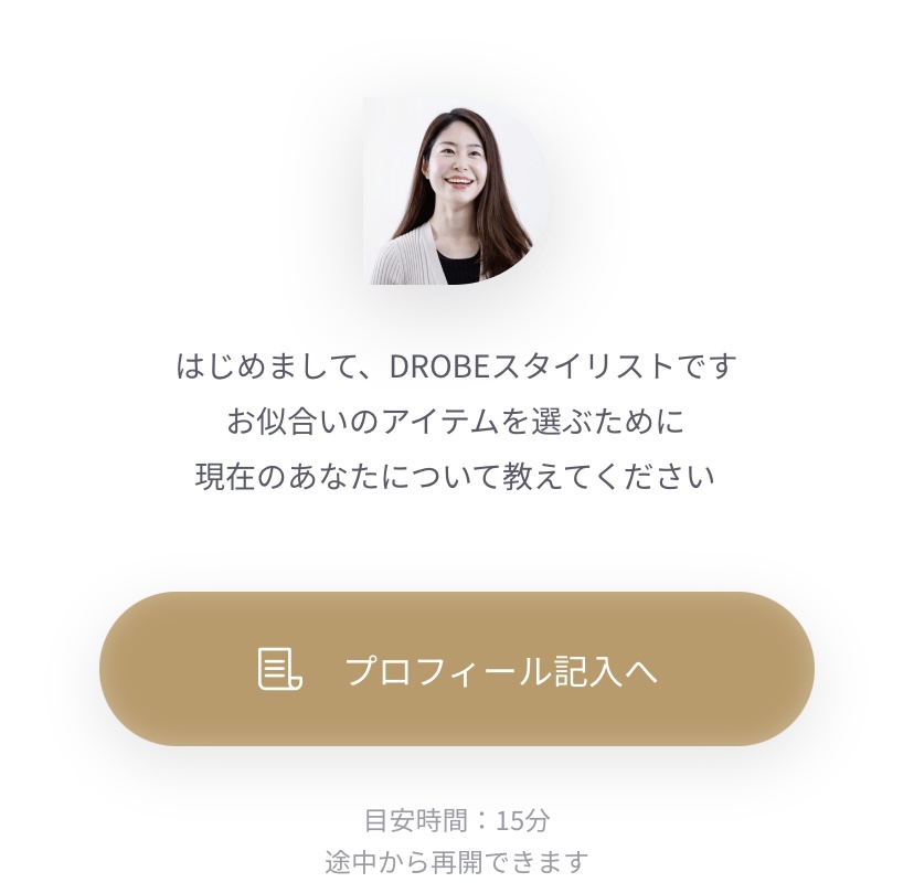 ドローブ公式LINEを友だちに追加するとプロフィール登録の案内がきます。70問の質問に答え、メールアドレス、住所、決済情報など商品お届けに必要な情報を入力すれば申し込み完了です。