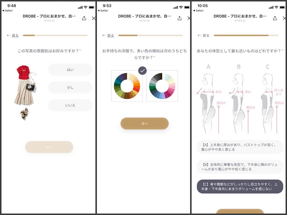 ドローブ(DROBE)では登録時にプロフィール記入という70問のアンケートがあります。