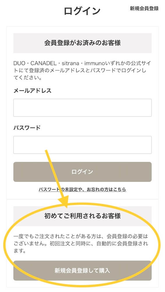 注文手続きへ進む→「初めてご利用されるお客様」で注文情報を登録