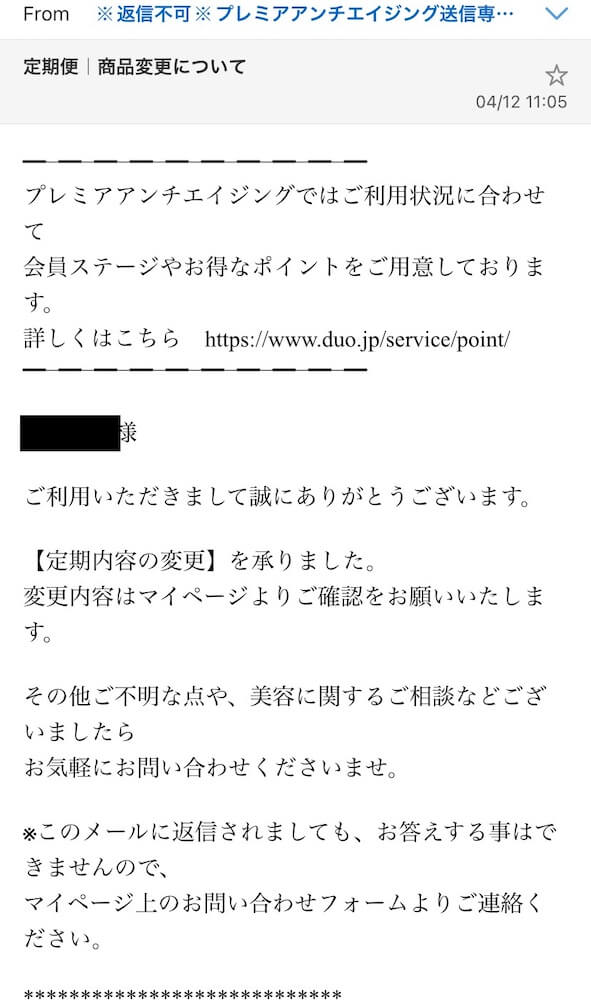 定期購入しているDUOクレンジングバームを違う種類に変更したくなったので問い合わせてみました!
