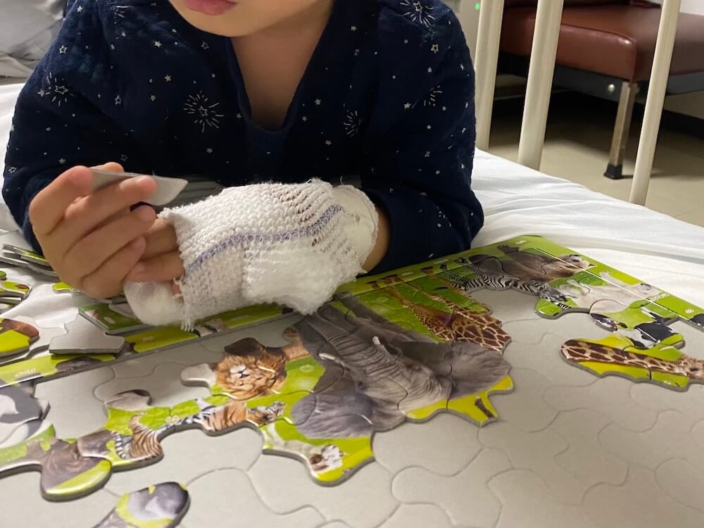 ちなみに4歳息子が病室で何度も遊んでいたおもちゃは折り紙、パズル、本、フィギュア(人形)です。